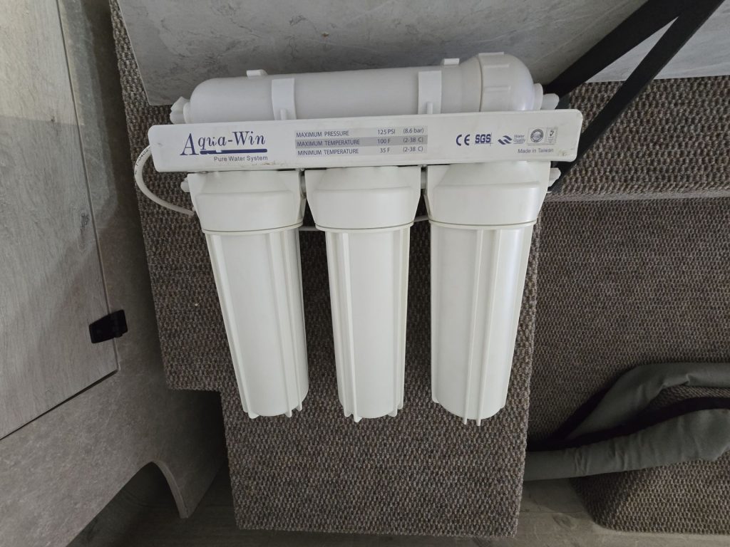 The caravan’s body features a robust construction with a fiberglass, steel-braced, mono-hull design. It rests on a galvanized steel ladder frame chassis with a 4mm thick main frame. The chassis includes a 2.5-ton Buirquip brake axle, long leaf springs, a 2.7-ton German brake system, and a heavy-duty nose wheel.