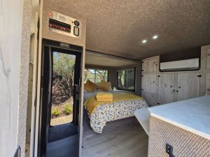 Safety features include a fixed digital safe and a fire extinguisher. The caravan’s electric and gas setup includes 220V plugs, a battery monitor and alarm, a 220/12V DB board, LED lights, and a Dometic water pump. Additionally, it comes with expedition gear, a tool kit, and the option for a selected range of upgrades and accessories on any model. Mobi Lodge ensures a comprehensive and well-equipped adventure experience with the Continental caravan.